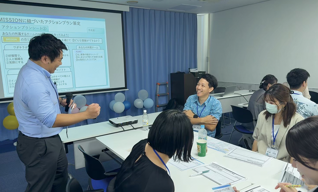 最初に取り入れたのはエニアグラムをはじめとしたコミュニケーション研修でした。自己理解・自己開示のきっかけになると同時に、普段あまり関わりのない社員同士が自然に交流できる場にもなり、アンケートでも好評でした。改めて研修の場を設けたことで、お互いの理解が深まり、以前より仕事がしやすくなったと感じているようです。