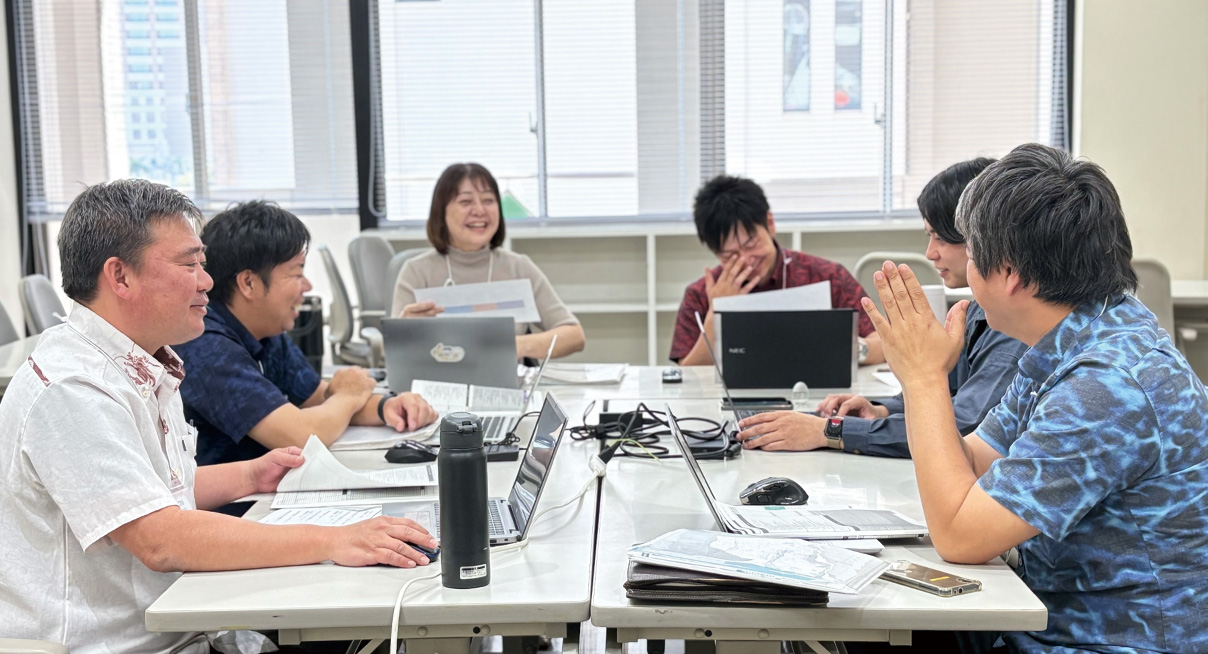 プログラムを受講したのは管理職メンバーである5名。研修はマネジメントの基礎からスタートし、部下のレイヤーに応じた目標設定や課題への向き合い方、フォローアップの方法などを学びました実際に研修を受けた南営業所・次長の神谷景一さんは、研修初期に「部下の人事評価の点数を上げる」ことを目標に掲げ、奮闘。「2週間に一度というペースは正直かなり大変ではありましたが、リムさんがいつもとにかく明るく、かつ根気強く向き合ってくれるので、僕たちもスイッチが入りました」と話します。研修は座学だけでなく振り返りや課題の提出など、日々の業務と紐づけながら進行。コーチングや面談の進め方など実践的なスキルも磨き、実際の運用ともすり合わせながら進めていきました。